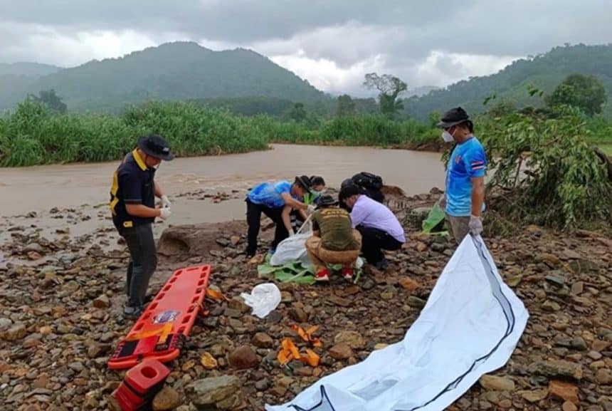Mr. Warayut Khombun, the District Chief of Thoeng district in Chiang Rai told reporters the woman had been missing since her village was flooded on the morning of August 17th. Her husband and relatives had been searching for her for three days.