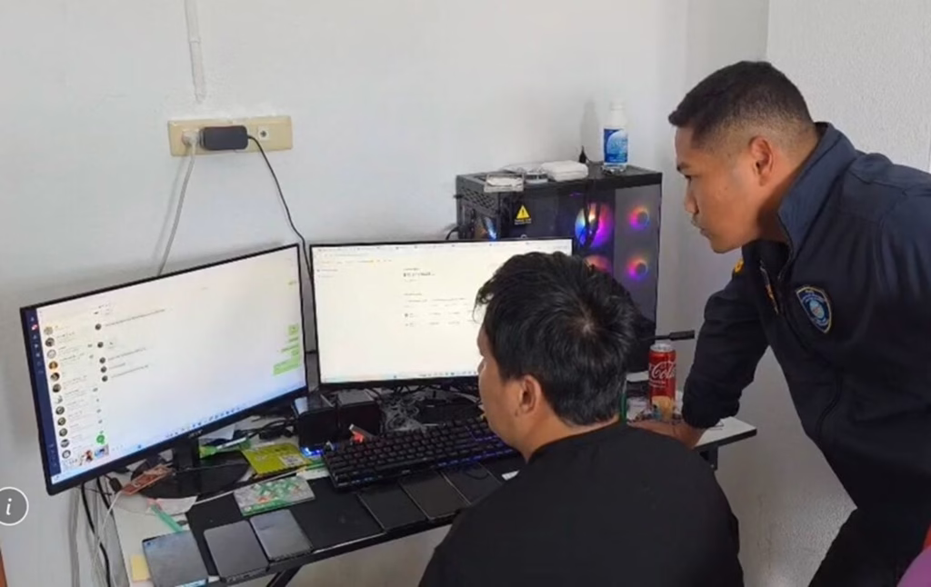 Armed with search warrants from the Chiang Rai Provincial Court, the Cyber Police investigation team raided a house in Village 6, Mae Sai subdistrict, Mae Sai district, Chiang Rai province. Police arrested four suspects at the scene.