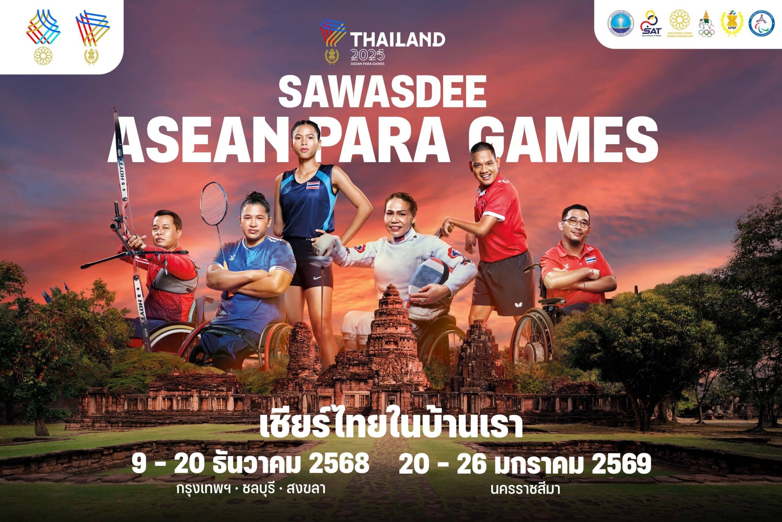 กระทรวงการท่องเที่ยวและกีฬา พร้อมด้วยการกีฬาแห่งประเทศไทย และคณะกรรมการพาราลิมปิกแห่งประเทศไทย ประกาศความพร้อมเต็มพิกัดในการเป็นเจ้าภาพ การแข่งขันกีฬาอาเซียนพาราเกมส์ ครั้งที่ 13 มหกรรมกีฬาคนพิการที่ยิ่งใหญ่ที่สุดในภูมิภาค ซึ่งจะจัดขึ้นระหว่างวันที่ 20-26 มกราคม 2569 ที่จังหวัดนครราชสีมา โดยมีวัตถุประสงค์เพื่อพัฒนากีฬา สร้างมิตรภาพอาเซียน และสร้างความเท่าเทียมในสังคม พร้อมเปิดตัวแคมเปญ “สวัสดีอาเซียนพาราเกมส์ เชียร์ไทยในบ้านเรา” เพื่อสร้างความภาคภูมิใจและแรงบันดาลใจให้คนไทยทั้งประเทศ