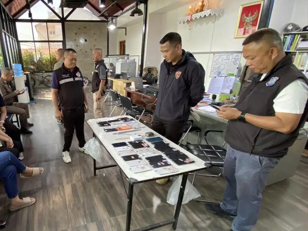 ระหว่างตรวจค้นภายในรถ พบกระเป๋าสะพายหลายใบ ภายในมีโทรศัพท์มือถือสมาร์ทโฟนรวม 23 เครื่อง อีกทั้งมีการแยกเครื่องและจัดหมายเลขให้ตรงกับการใช้งานตามเมืองต่างๆ ในสหรัฐอเมริกา เช่น ไมอามี, เทกซัส เป็นต้น ลักษณะดังกล่าวเข้าข่ายการใช้งานของขบวนการหลอกลวงออนไลน์