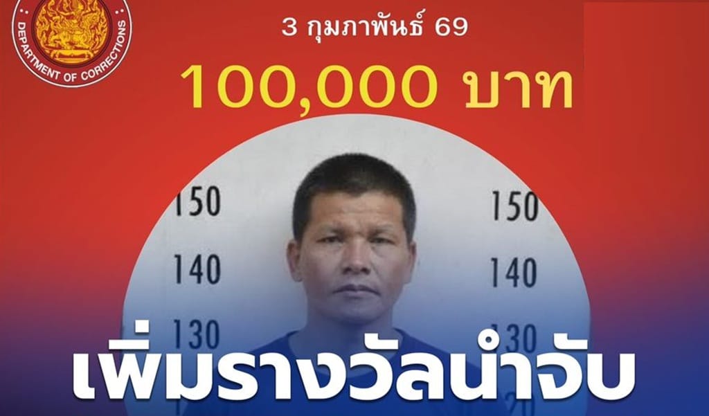 รางวัลนำจับผู้หลบหนีจากเรือนจำเชียงรายดอยหาง เพิ่มขึ้นเป็น 100,000 บาท